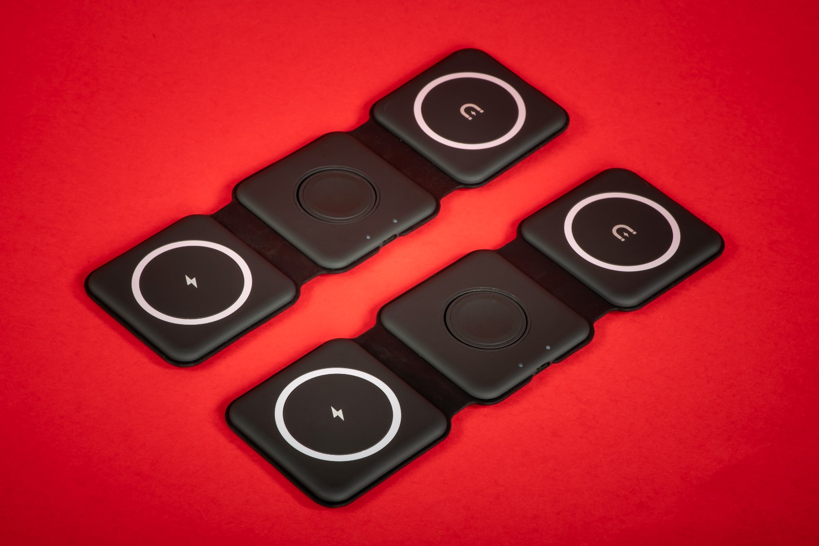شارژر وایرلس سه‌کاره با طراحی مدرن و مینیمال انتخابی ایده‌آل برای میز کار یا فضای شخصی است.